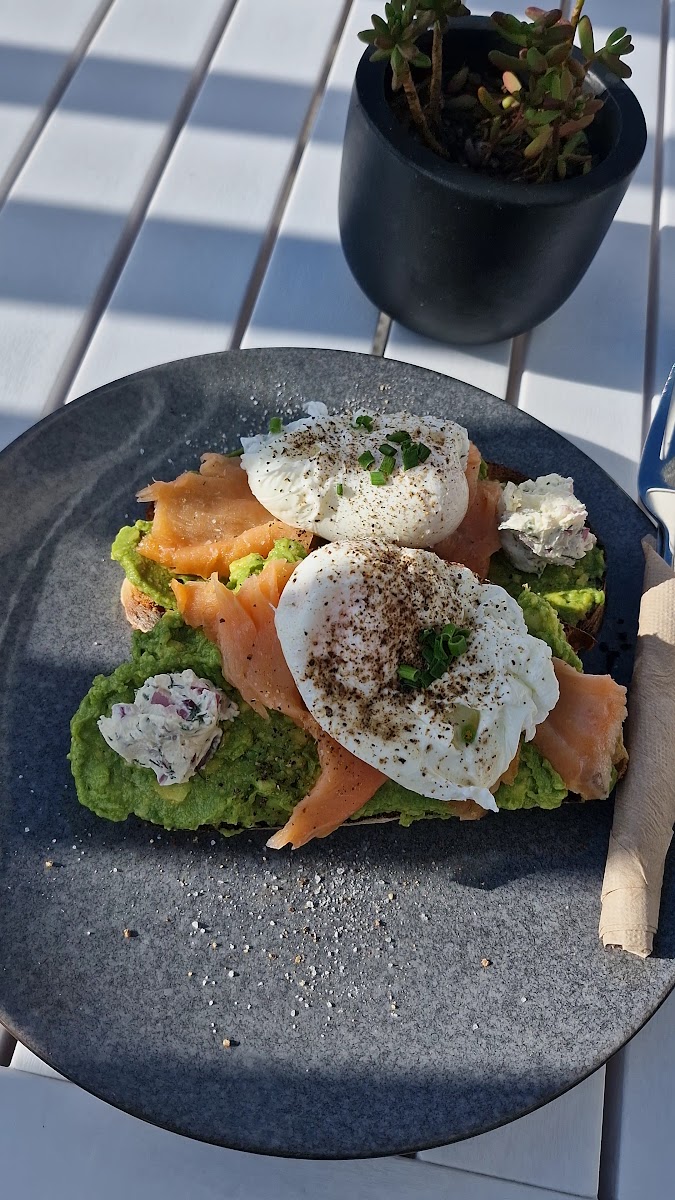The food leans into fresh, straightforward café fare with a strong local feel. The smashed avocado variations, especially the one with housemade red onion and dill cream cheese paired with smoked salmon, get particular mention for balanced flavours and generous portions. Their breakfasts—egg dishes, toast with preserves, and bowls featuring seasonal fruit and granola—offer comfortable choices for people grabbing a bite before heading to the beach or settling into work on a laptop.